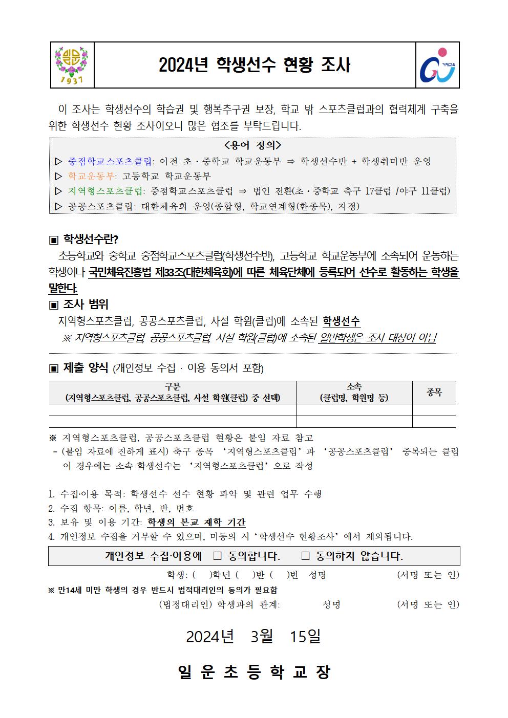 2024년 학생선수 현황 조사