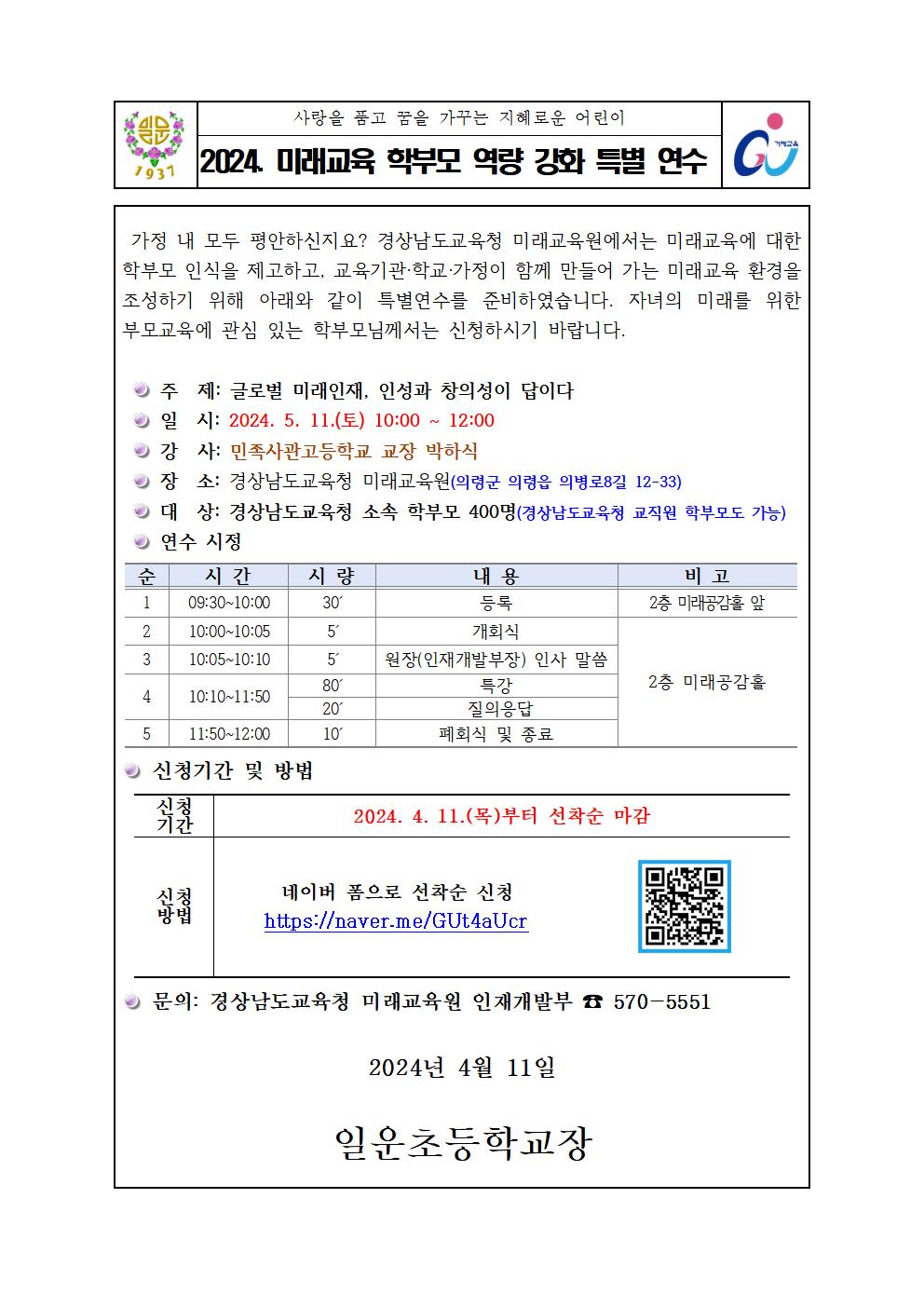 2024. 미래교육 학부모 역량 강화 특별 연수